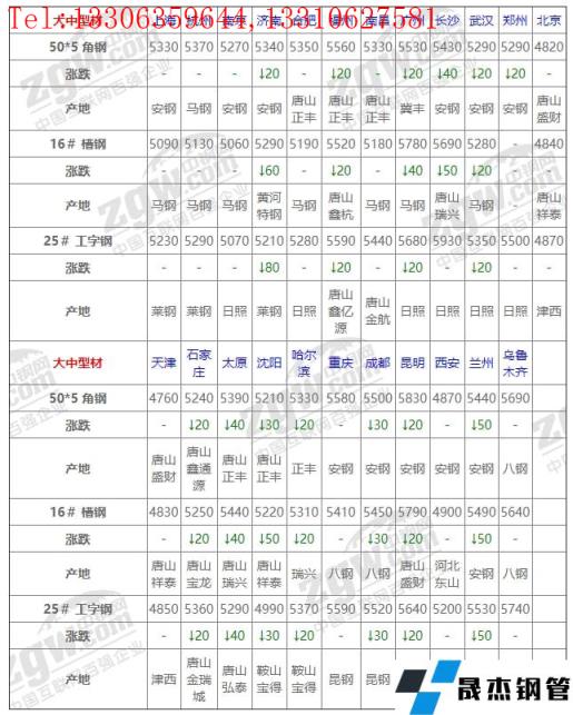 全國22個(gè)主要市場16# 槽鋼平均價(jià)格5308元/噸,較上個(gè)交易日下調(diào)19元/噸。