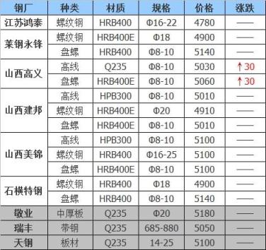 上調(diào)2家,占比12.5%,調(diào)價幅度20-30元/噸,